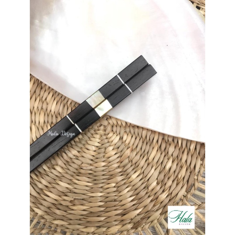 Bộ 10 đôi đũa gỗ mun khảm xà cừ loại vip, đũa ăn cao cấp, tặng kèm hộp