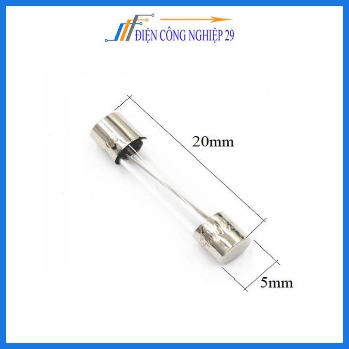 Bộ 10 Cầu chì ống thuỷ tinh 250v 5x20mm ✯ ✯ ✯ Thông Số Sản Phẩm: ☑️Kích thước: 5x20mm ☑️Điện áp cực đại: 250V ☑️Trọng lượng: 5g ☑️Đặc điểm của cầu chì ống: ☑️Cầu chì ống thủy tinh hoạt động theo nguyên lí tự động nóng chảy hoặc uốn cong để tách khỏi mạch điện khi mạc