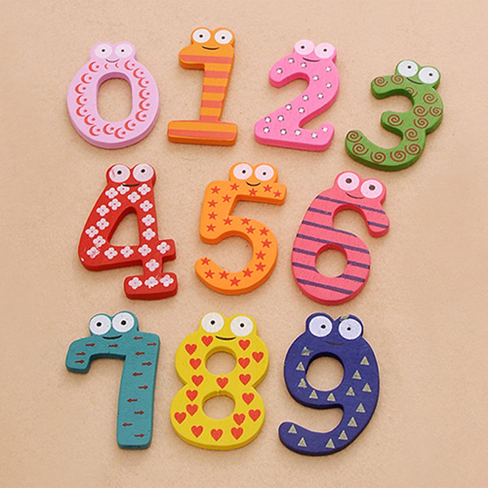 Bộ 10 Chữ Số 0-9 Bằng Gỗ Nhiều Màu Sắc Dễ Thương Có Nam Châm Gắn Tủ Lạnh Cho Bé