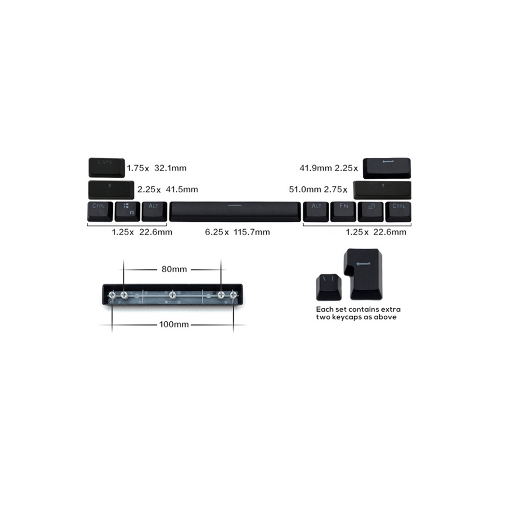 Ghi chú: 1. Đây CHỈ là keycap, bàn phím chỉ để hiển thị, KHÔNG bao gồm bàn phím! 2.Hiệu ứng ánh sáng có thể có sự khác biệt với keycaps ban đầu của bạn. Đây là mũ chụp phím hỗ trợ Đèn Led, bản thân mũ chụp phím không được chiếu sáng. Nếu bàn phím của bạn không có chức năng Led. Keycap không thể tự động chiếu sáng. 3. Bộ phím 104 này tương thích với hầu hết các bàn phím cơ thương hiệu, dưới kích thước của các phím đặc biệt >>> 1,25x phím dưới (CTRL ALT WINS...) và phím SPACE 6.25x <<<, vui lòng so sánh với bàn phím của bạn cho dù nó có khớp hay không. Keycap này KHÔNG hoàn toàn tương thích với dòng Cherry G80, Logitech, USCORSAIR, Razer. Khoản mục: Keycaps Thiết kế cho người dùng tiếng Nga, Hàn Quốc, Tây Ban Nha, Pháp, Đức, ngôn ngữ. Keycaps chiếu sáng đúc kép. Chất liệu ABS, bền, không phai màu. Bề mặt mờ và cảm giác tốt. Dễ dàng sử dụng với bộ kéo chìa khóa, thay thế tự làm. Tương thích với công tắc MX cho bàn phím cơ. Hai loại chìa khóa ENTER. Màu sắc: đen, trắng