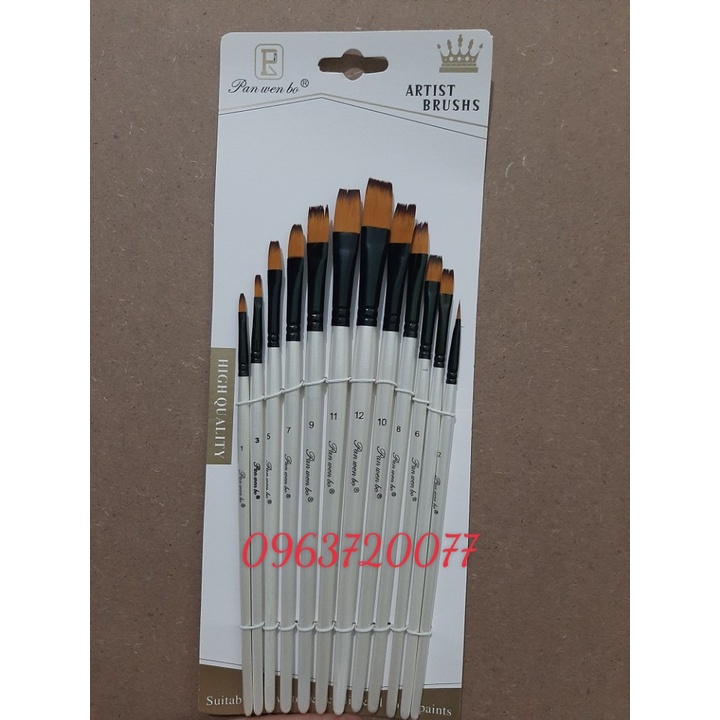 Bộ 12 cọ vẽ màu nước, acrylic nghệ thuật chất lượng cao