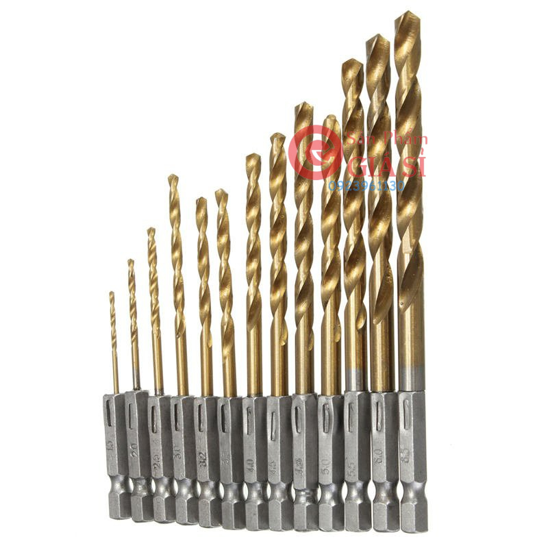 Bộ 13 mũi khoan HSS phủ titanium trục lục giác