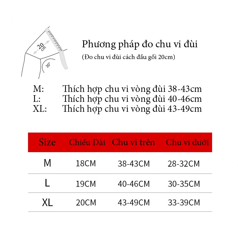 Bộ 2 băng bảo vệ cơ đùi AOLIKES HDT001-2 Thông số kỹ thuật: - Nhãn hiệu: AOLIKES - Chất liệu: Vải Lycra đàn hồi - Màu sắc: Black, White - kích thước: M/L/XL - Đo chu vi vòng đùi cách đầu gối 20cm - M: Thích hợp chu vi vòng đùi 38-43cm - L: Thích hợp chu vi vòng đùi 40-46cm - XL: Thích hợp chu vi vòng đùi 43-49cm - Gói sản phẩm/1 đôi Ưu điểm sản phẩm - Thiết kế với các dải silicon chống trượt - Thoáng khí, hút ẩm và bền màu tốt - Chất liệu co giãn 4 chiều dễ dàng đeo vào tháo ra. - sản phẩm phù hợp với mọi kích thước của chân