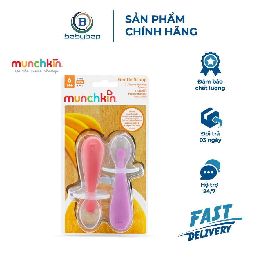 Bộ 2 Thìa Silicone Tập Xúc Chống Hóc Munchkin Phù Hợp Với Bé Từ 6 Tháng Tuổi Trở Lên