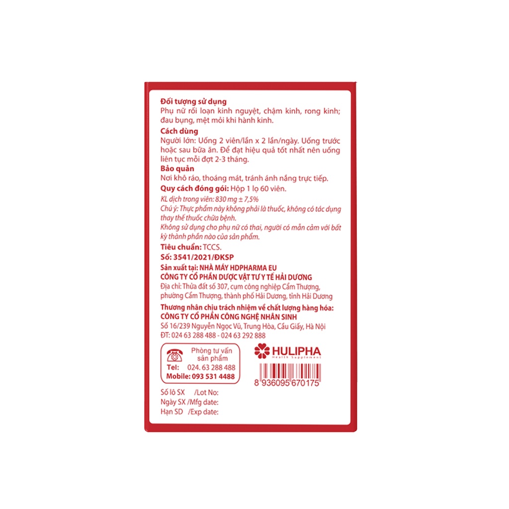📌THÔNG TIN SẢN PHẨM - Tên sản phẩm: Viên Uống Kingrose An Điều Kinh Hỗ Trợ Điều Hòa Kinh Nguyêt, Hết Chậm Kinh. Rong Kinh Hộp 60 Viên - Thương hiệu: KINGROSE - Quy cách: Lọ 60 viên - Thành phần: Tinh dầu hoa anh thảo, Omega3, Hương phụ, Ngải diệp, Rutin, Inositol, Vit. E, D, B1, B6, B9, C. Khoáng chất: Zn, Ca, Mg. - Hạn sử dụng: Xem trên bao bì. - Bảo quản: Nơi khô mát, tránh ánh nắng trực tiếp. - Xuất xứ: Việt Nam - Sản xuất tại: Công ty cổ phần Dược VTYT Hải Dương - Phân phối: CÔNG TY CỔ PHẦN CÔNG NGHỆ NHÂN SINH - LƯU Ý: Thực phẩm này không phải là thuốc, không có tác dụng thay thế thuốc chữa bệnh. 📌ƯU ĐIỂM NỔI BẬT - Điều hòa kinh nguyệt, hết chậm kinh, rong kinh phụ nữ - Công thức mới độc đáo với tinh dầu hoa anh thảo, Inositol ổn định nội tiết tố nữ - Hỗ trợ làm giảm các triệu chứng khó chịu trước và trong kỳ kinh nguyệt: cáu gắt, mệt mỏi, da sạm, đau lưng, đau bụng, nổi mụn, căng tức ngực… - Sản phẩm được đông đảo chị em tin dùng. 📌CÔNG DỤNG - Hỗ trợ điều hòa kinh nguyệt, hết chậm kinh, rong kinh phụ nữ, giảm đau bụng kinh. 📌ĐỐI TƯỢNG SỬ DỤNG - Phụ nữ có chu kỳ kinh nguyệt không đều: chậm kinh, rong kinh. - Phụ nữ mệt mỏi, khó chịu, đau bụng kinh, đau lưng trước và trước và trong kỳ kinh - Chú ý: Không nên dùng cho phụ nữ có thai. Thực phẩm này không phải là thuốc, không có tác dụng thay thế thuốc chữa bệnh. 📌HƯỚNG DẪN SỬ DỤNG - Người lớn mỗi lần uống 2 viên x 2 lần/ngày. Uống sau bữa ăn. Để đạt hiệu quả tốt nhất nên uống liên tục mỗi đợt 2-3 tháng. 📌CHÍNH SÁCH CỦA HULIPHA - Cam kết 100% hàng chính hãng - Đổi trả sản phẩm trong vòng 7 ngày (Có vấn đề gì về lỗi sản xuất, nhầm đơn hàng). - Hoàn lại 100% nếu phát hiện hàng giả ( Tem QR check code đầy đủ, bảo hộ bởi Vietcheck) DƯỢC - MỸ PHẨM NHÂN SINH HULIPHA Đem lại Sức khỏe - Vẻ đẹp - Hạnh phúc _______________________________________ Công ty cổ phần công nghệ Nhân Sinh - Hulipha., JSC được thành lập từ năm 2012, là doanh nghiệp phát triển thương hiệu và phân phối kinh doanh các sản phẩm dược phẩm, thực phẩm chức năng, mỹ phẩm, thiết bị vật tư y tế chăm sóc sức khỏe con người trên toàn bộ lãnh thổ Việt Nam. #HULIPHA #mypham #duocpham #thucphamchucnang #kinhnguyet #vienuong #dieuhoa #chamkinh #rongkinh #giamdau #noitietto #shopee