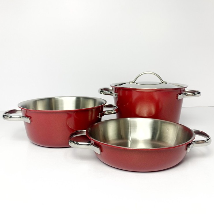 Bộ 3 nồi mini 16cm 3 lớp Màu Hồng/Cam/Vàng/Xanh/Đỏ