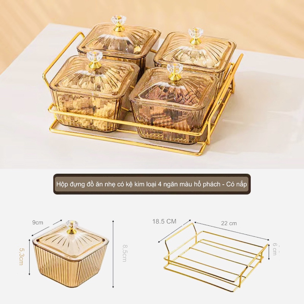 Bộ 4 - 6 Ngăn Nắp Vàng Đựng Mứt / Bánh Kẹo