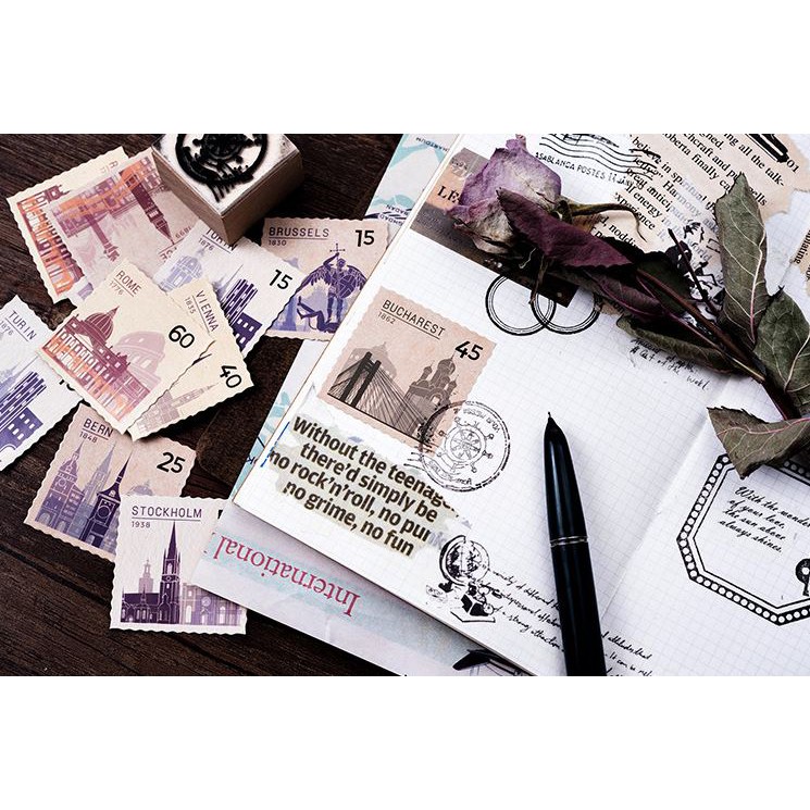 Bộ 45 Sticker Tem Thư Cổ Điển E55