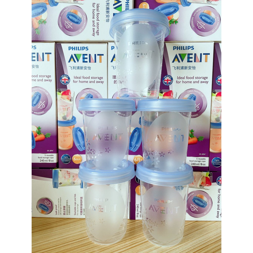 Lưu trữ sữa mẹ Avent Cup Lưu trữ thực phẩm 8oz Chậu không chứa BPA có nắp vặn và khóa không rò rỉ, hoàn hảo để cất giữ sữa mẹ, thức ăn cho trẻ sơ sinh trong giai đoạn cai sữa hoặc cho đồ ăn nhẹ cho trẻ mới biết đi. Hộp đựng không chứa BPA có thể được sử dụng để bảo q