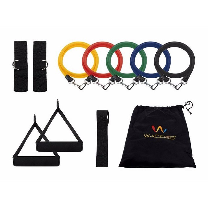 Bộ dây đàn hồi tập thể hình - dụng cụ tập gym cao cấp ( Dành cho đối tượng nam + nữ ) Giới thiệu sản phẩm Bộ dây đàn hồi tập thể hình cao cấp Bộ dây đàn hồi tập thể lực ZENO có 5 dây, mỗi dây có mức trọng lượng khác nhau, từ nhẹ tới nặng (8 lbs, 15 lbs, 20 lbs, 25 lbs, 30 lbs) có thể tập riêng từng dây, hoặc kết hợp 2 dây, 3 dây, 4 dây, 5 dây. Dây được làm bằng chất liệu cao su tự nhiên hiện đại. Các dây có chiều dài bằng nhau, đều là 1m2. Bộ sản phẩm cung cấp sức đề kháng và tập luyện mà khi tập các bài tập với vật nặng, tạ không thể có được.Với lực kháng hai chiều của dây cho phép bạn được hưởng lợi hai lần từ một chuyển động duy nhất so với các chuyển động lên duy nhất bạn thường tập với các dụng cụ truyền thống như tạ, vật nặng. Dù bạn là ai và đang ở bất kì độ tuổi nào, dây kháng lực của Wacces luôn phù hợp với tất cả mọi người, bạn sẽ cảm thấy thoải mái khi tập, đem lại hiệu quả tập luyện, giảm cân, tăng cường thể lực, bạn sẽ cảm thấy mạnh mẽ hơn, quyến rũ hơn và hơn hết là đạt được mục tiêu thể lực của chính mình. Đặc tính Dây đàn hồi tập thể hình Resistant Band Dây được làm bằng chất liệu cao su tự nhiên hiện đại. Các dây có chiều dài bằng nhau, đều là 120 cm Dễ dàng đem lại hơn 30 độ chịu lực bằng việc kết hợp 1,2,3,4 hoặc 5 dây lại với nhau. Rất tuyệt vời khi sử dụng cho các bài tập YOGA, BỤNG, các chương trình tập luyên như P90X, P90XX, TAPeOUT…. Bộ sản phẩm Dây đàn hồi tập thể hình Resistant Band - Dây vàng (rất nhẹ, tương đương 6-5 lbs) - Dây xanh (nhẹ, tương đương 7.5-8.5 lbs) - Dây đỏ (trung bình, tương đương 10-12lbs) - Dây xanh biển (nặng, tương đương 15-18lbs) - Dây đen (rất nặng, tương đương 22lbs) - 2 tay cầm- 2 dây móc- 1 neo cửa- 1 túi dụng cụ