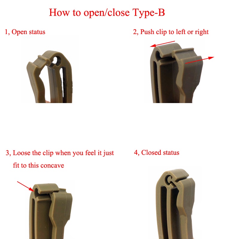 Để cố định dây đeo vải dài 2 loại: A, B Phù hợp với: Chiều rộng dây đeo 20mm (0,78 inch) Chiều rộng 25mm Dây đeo (1 inch) Chiều rộng 32mm Dây đeo (1,25 inch) Chiều rộng 38mm Dây đeo (1,5 inch) Chiều rộng 50mm Dây đeo (2 inch) Gói bao gồm: 5 * Kẹp kết thúc vải