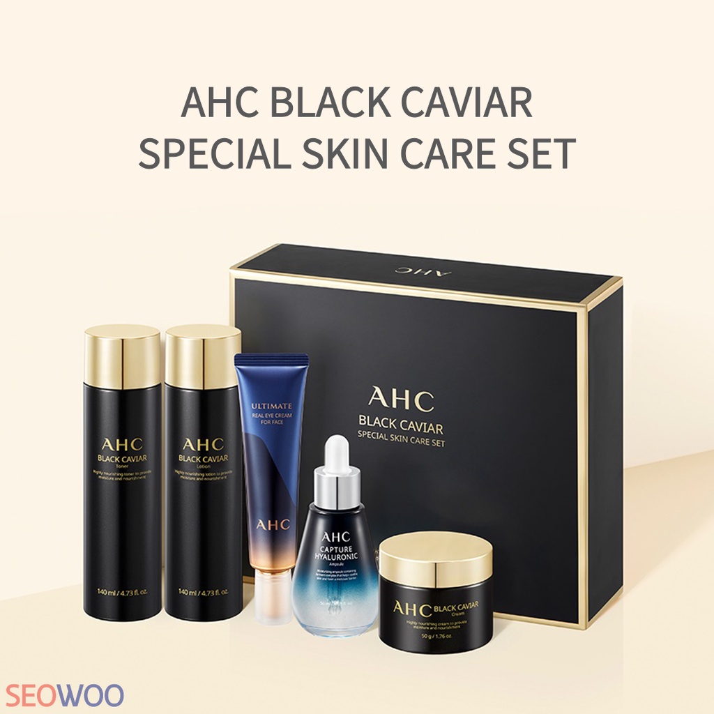 Bộ 5 món mỹ phẩm AHC Black Caviar Essential Special thiết kế sang trọng