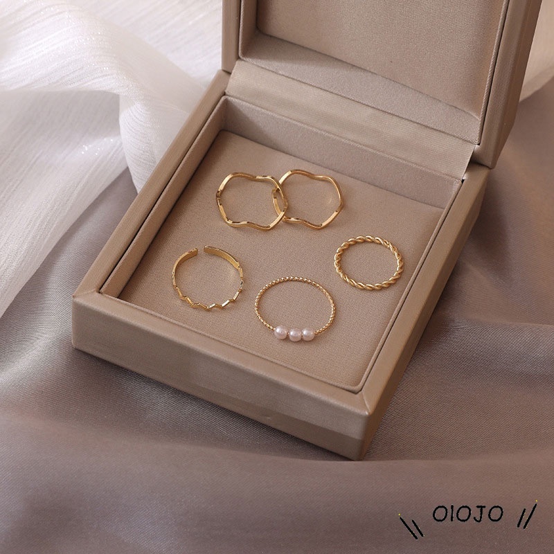 Bộ 5 nhẫn phối ngọc trai nhân tạo phong cách quý cô thời trang