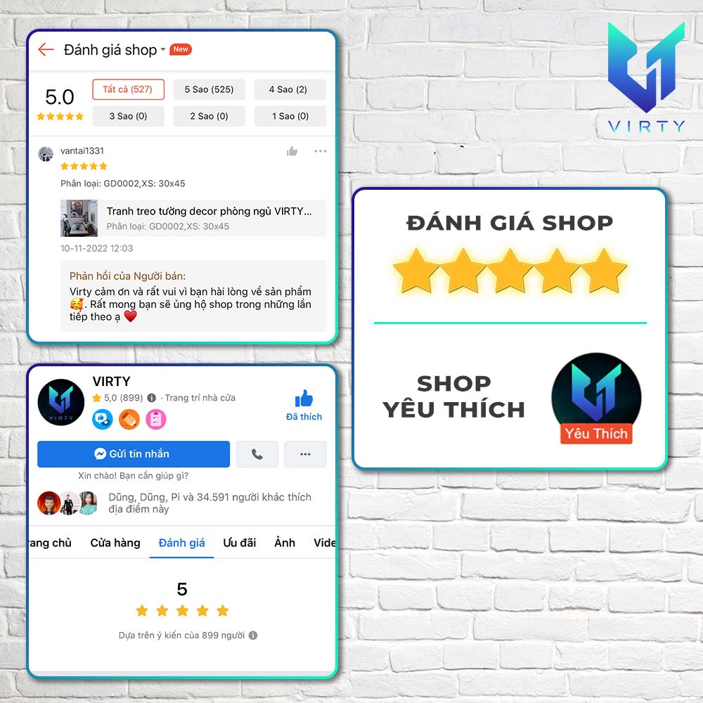 Virty Store - chuyên cung cấp tranh treo tường, tranh canvas decor phòng khách, phòng ngủ kèm khung cao cấp ✓ Hoàn lại tiền nếu sản phẩm không đúng mô tả và hình ảnh ✓ Bảo hành 3 năm nếu sản phẩm phai màu, nhòe nét ✓ Chi phí phát sinh trong quá trình bảo hành hoàn t