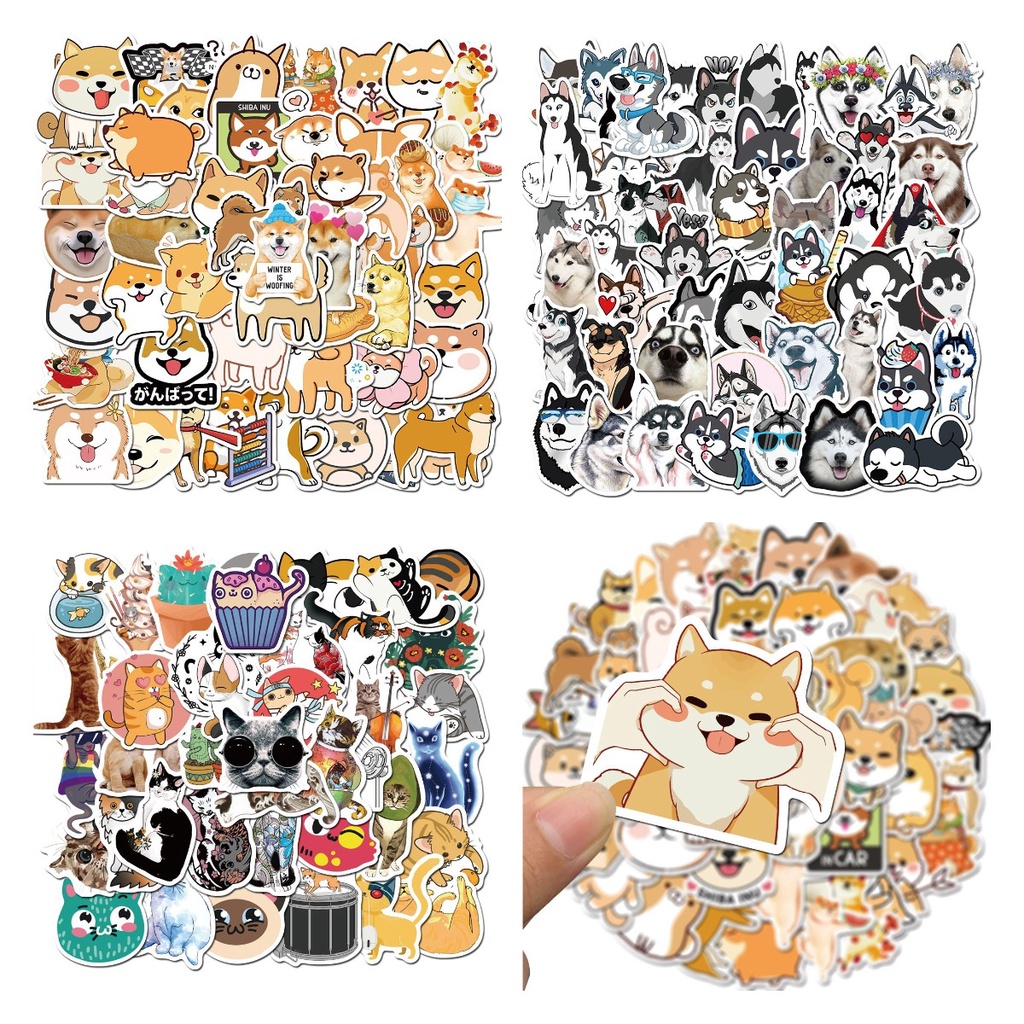 Bộ 50 Miếng Dán Trang Trí Mũ Bảo Hiểm / Bút Chì Chống Thấm Nước Hình Cún yowoyowoo Dễ Thương