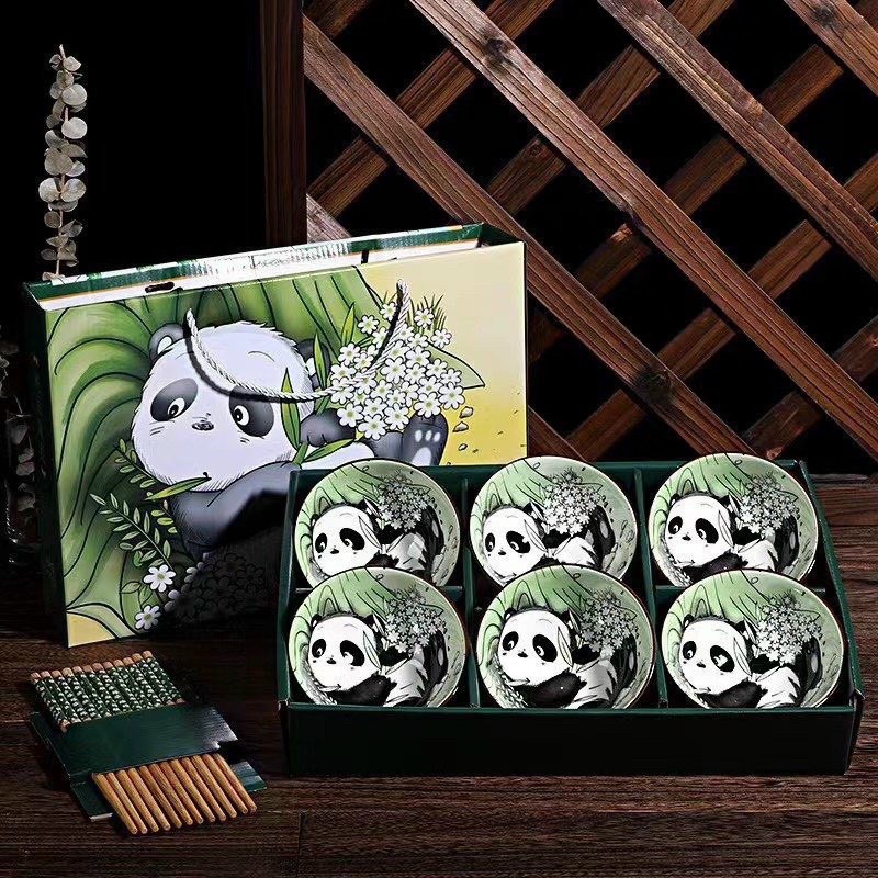 Bộ 6 chén gốm sứ hình hoạ tiết con vật dễ thương - Tặng kèm hộp có quai xách sang trọng