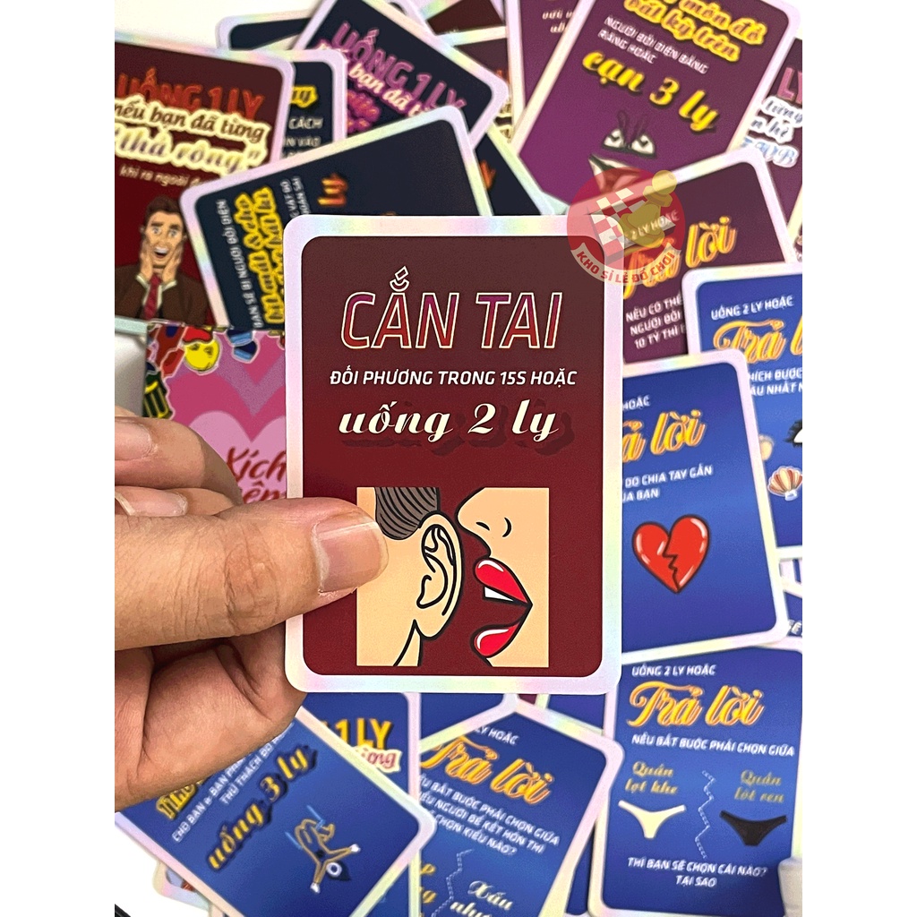 THÔNG TIN SẢN PHẨM - Tên: Bộ bài "HUỆ" phiên bản đặc biệt XTC - Kích thước hộp: 10 x 7 x 3 cm - Kích thước lá bài: 6.4 x 8.9 cm. - Khối lượng: 100g - Chất liệu: Ivory - Thành phần: 68 thẻ bài - Xuất xứ: Sản xuất tại Việt Nam - Năm sản xuất: 2022 - Dành cho độ tuổi từ 14 tuổi. ĐIỀU GÌ KHIẾN 90% CÁC CẶP ĐÔI YÊU NHAU NGAY TỪ BUỔI HẸN ĐẦU TIÊN? ĐIỀU GÌ KHIẾN 99% NHÓM BẠN CƯỜI SẢNG, SAY QUÊN LỐI VỀ KHI TỤ TẬP? Bạn cần 1 cuộc vui đầy náo nhiệt với lũ bạn theo cách thật khác biệt so với mọi khi Bạn cần một cuộc hẹn hò đáng nhớ với người yêu hay crush ? Không cần phải nghĩ ngợi nhiều, chúng mình có HUỆ phiên bản “Xích thêm chút” sẽ là chìa khóa “mở đường” cho bạn đây. Tiếp tục với sự thành công ở phiên bản đầu tiên, ở lần trở lại thứ 2 này, với phiên bản đặc biệt “Xích thêm chút”, HUỆ sẽ đem các bạn thực sự xích lại gần nhau hơn nữa. Vậy sự khác biệt của HUỆ là gì so với các bộ bài khác? - Chất liệu: Giấy bìa cứng có lớp cán chống nước. Đảm bảo bền nhất hiện nay so với các bộ bài cùng loại, chơi nhiều lần mà không phải lo hỏng hay rách. - Số lượng: 68 lá bài với cực nhiều những thử thách, câu hỏi, tương tác khác nhau. Đảm bảo chơi từ đêm tới sáng mai cũng không hết, chỉ sợ cười mệt trước khi hết bài. - Tính hot trend: Ngay từ phiên bản đầu tiên, HUỆ đã được sự tin tưởng và trải nghiệm bởi rất nhiều các KOLs, hot tiktokers Nếu bạn cần 1 cuộc vui quên cả tên người yêu cũ thì chúng mình luôn sẵn sàng ;) Nào! Chơi thử đi thì biết! #khosiledochoi #boardgame #drinkinggame #say #ruou #bia #bai #game #bobaitay #NocOut #playingcard #card #vui #nhau #banbe #uongruou #uongbia #HUE #trend #hot #khosiledochoi #XTC #Xichthemchut