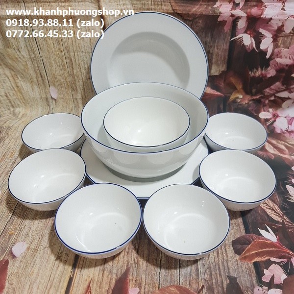 Bộ bàn ăn cao cấp sứ Minh Long viền xanh dương - bộ bàn ăn sứ minh long viền xanh dương