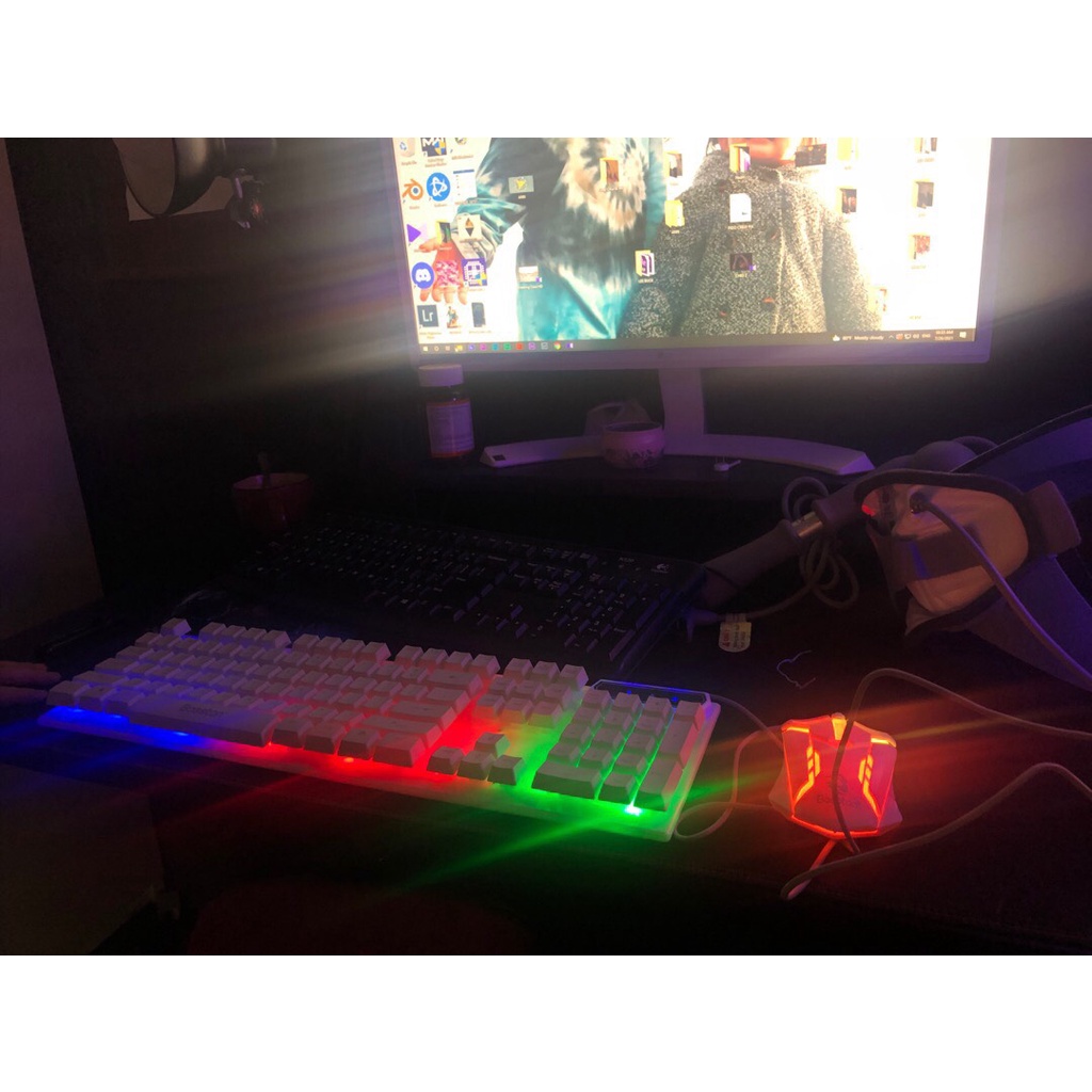 ộ bàn phím giả cơ,bàn phím máy tính bàn Bộ bàn phím giả cơ, bàn phím máy tính bàn với thiết kế đơn giản dễ xử dụng nhưng không mất đi sự tinh tế, góc cạnh Bàn phím máy tính bàn, phím nhạy và rất dễ sử dụng Bàn phím máy tính bàn, thiết kế hiện đại, kiểu dáng thời trang không cục mịch xấu xí như loại cổ điển. Có thể điều khiển tắt bật bàn phím led nhiều màu ấn tượng, ban đêm tắt điện vẫn sử dụng bàn phím bình thường. Nhẹ gọn, trọng lượng: 0.8kg Kích thước bàn phím: 44 x 12.7 x 3 (cm) Kích thước chuột: 12.6 x 7 x 3.4 (cm) Cổng kết nối: usb Loại kết nối: Có dây Chất liệu vỏ: Nhựa ABS bền Sản phẩm bộ bàn phím giả cơ có đèn led sử dụng máy tính để bàn máy tính xách tay gia đình văn phòng Lưu ý dành cho khách quý khách hàng: Bật / tắt đèn led: Bấm phím scroll lock trên bàn phím Đèn led bàn phím không nhấp nháy, chỉ có chế độ bật led hoặc không led Chuột led đổi màu, không tắt được đèn led chuột. ===================== Sản phẩm bao gồm: ---------- • Một bàn phím mới (theo màu bạn đã chọn) • Một chuột mới đi kèm - Tên hàng hóa : Bàn phím máy tính - Xuất xứ : Sản xuất tại Trung Quốc #ban#phim#co#gia#may#tinh#ban#re#bluetooth#chuot#led#khong#day#dell#laptop#combo#roi#day#gaming