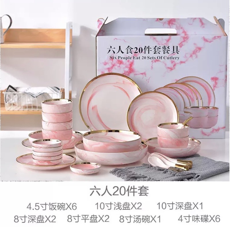 Bộ bát đĩa vân hồng viền vàng gốm sứ cao cấp