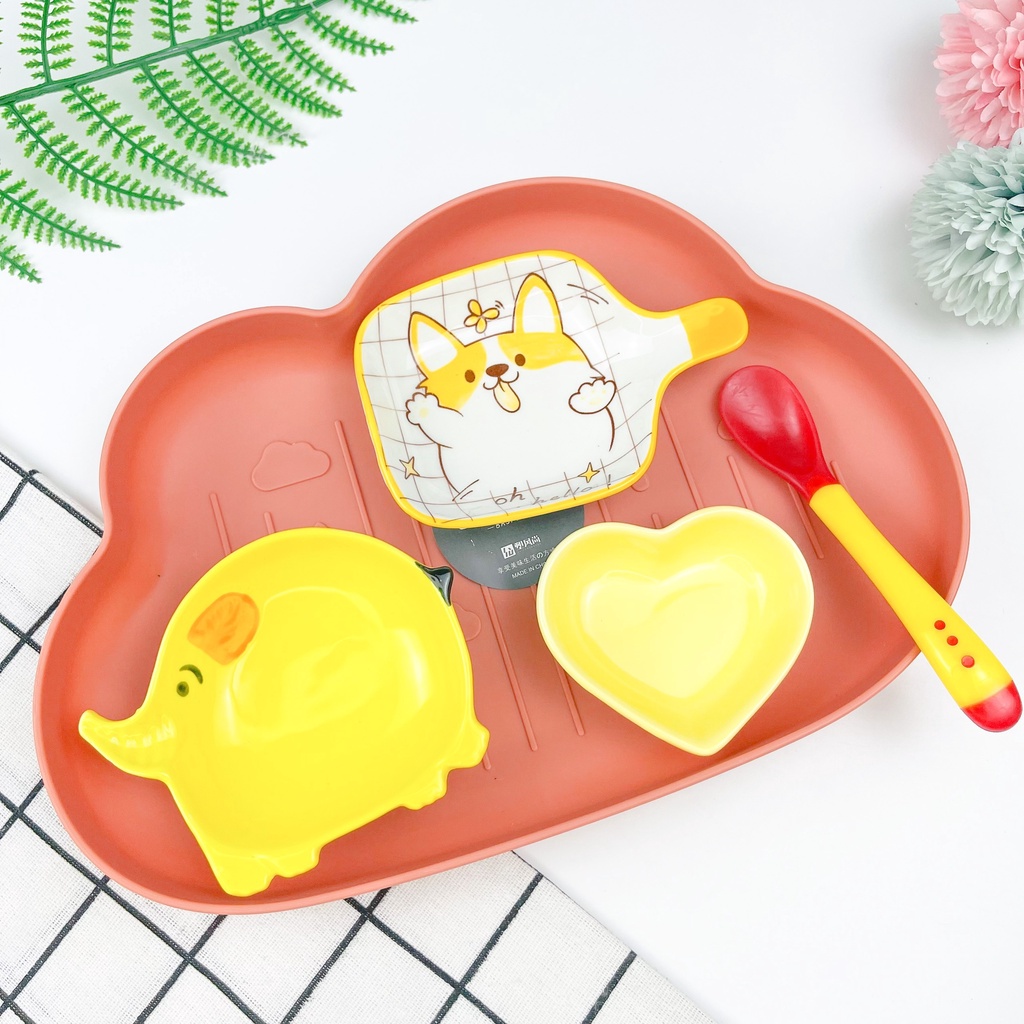 Bộ Bát Sứ Ăn Dặm Cho Bé Từ 5 Tháng Kiểu Nhật Đủ Màu Gồm Khay Bát Thìa Báo Nóng Gốm Sứ Cao Cấp Babyducky Store