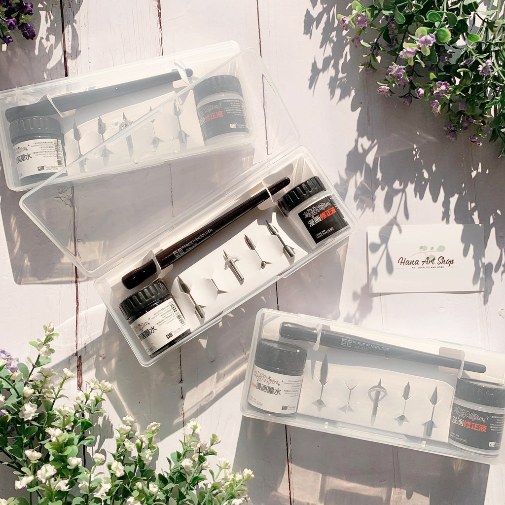Bộ bút sắt 5 ngòi , kèm 2 lọ mực và hộp đựng