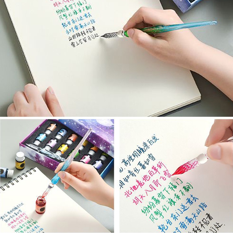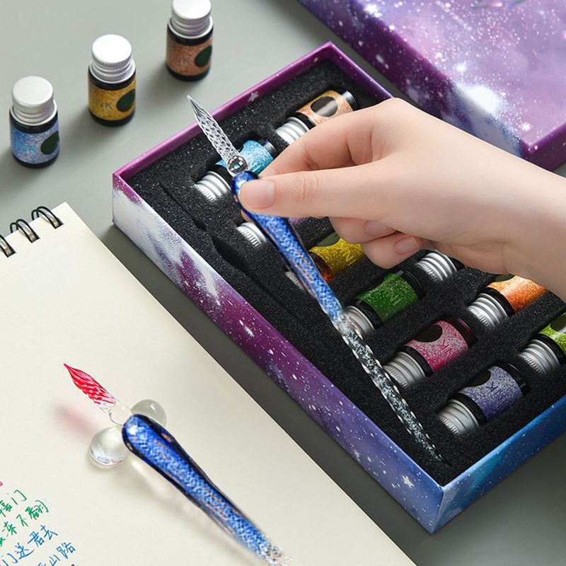 #Crystal #Glass #Pen #Starry #Sky #Dip #Pen #Glitter #Powder #Fountain #Pen #12 #Colors #Ink #Gift Crystal Glass Pen Starry Sky Dip Pen Glitter Powder Fountain Pen 12 Colors Ink Gift Box Set Writing Supplies Features: ♥The whole body is made up of the glass pen. ♥Per