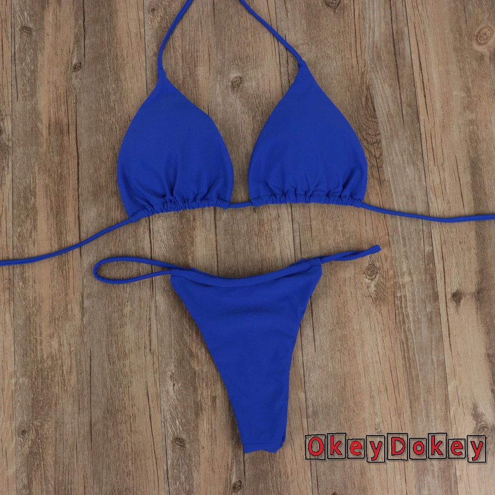 Bộ Bikini 2 Mảnh Màu Trơn Có Dây Đeo Cổ Màu Sắc Đơn Giản Thời Trang Cho Nữ