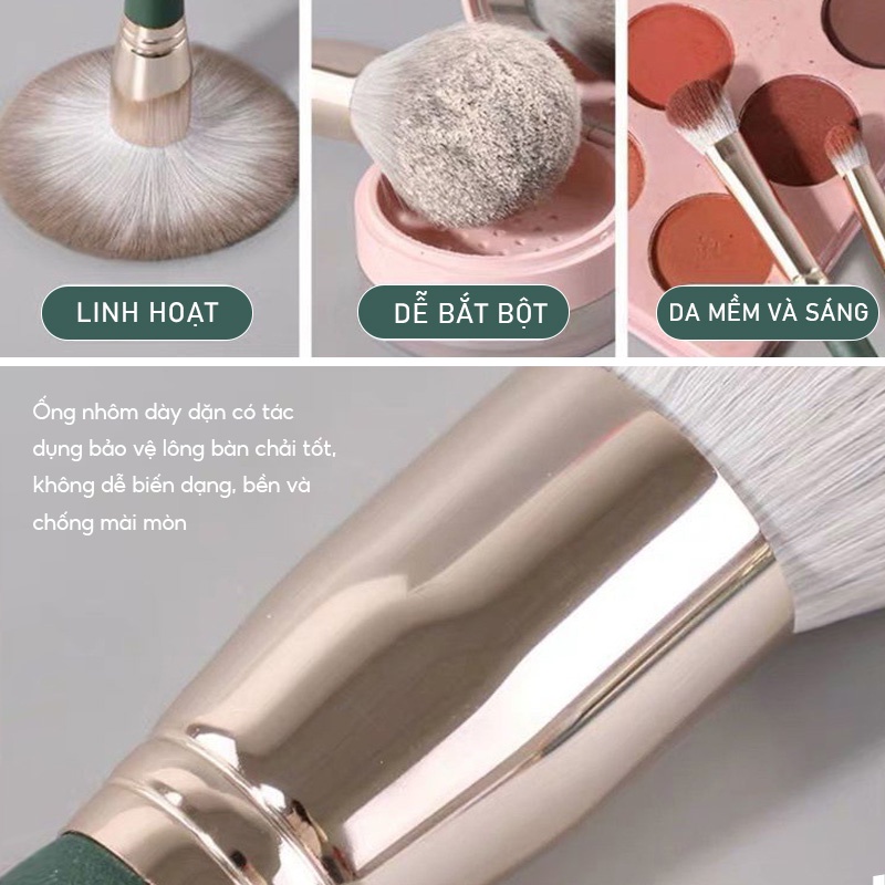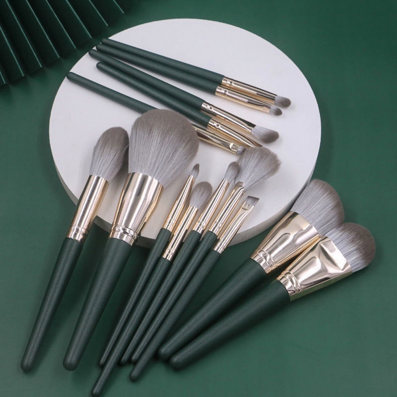 Bộ cọ trang điểm cá nhân 14 cây xanh lá kèm hộp đựng chuyên nghiệp