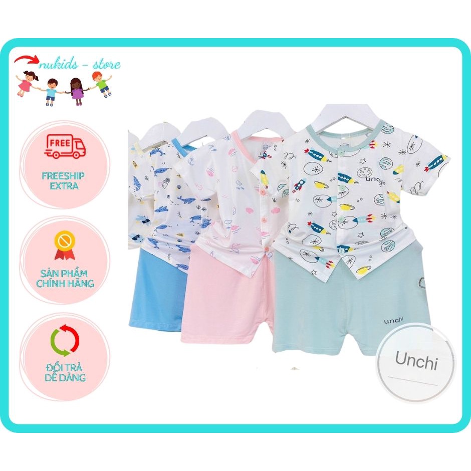 Bộ cộc tay cotton thun lạnh UNCHI cho bé trai bé gái cúc giữa thoáng mát mùa hè