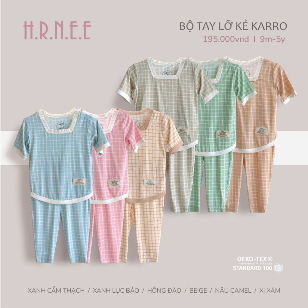HRNEE Bộ cộc tay cài vai phối chỉ hãng HRNEE chất liệu vải sợi sồi cao cấp - Bộ sưu tập 2023