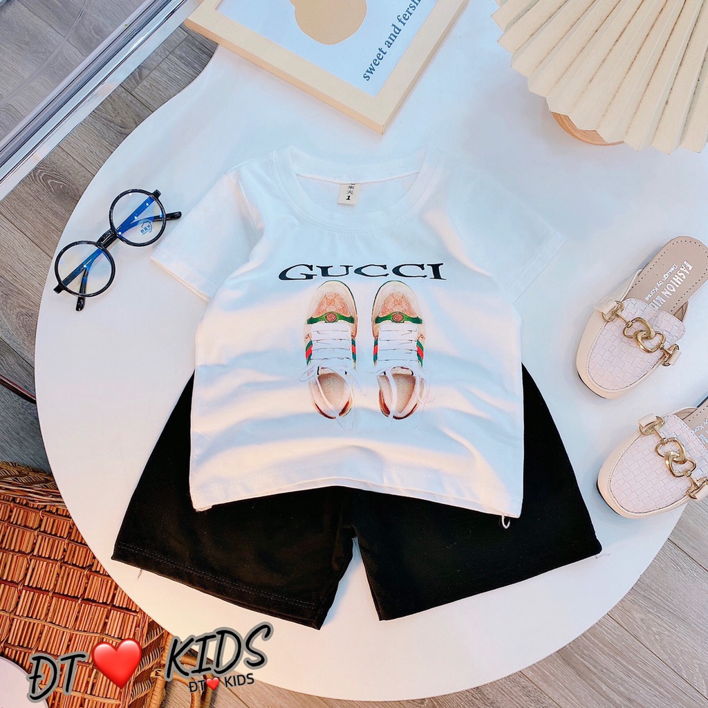 Bộ cộc tay bé gái, bộ quần áo họa tiết đôi giày 3D cho bé size 8-35kg