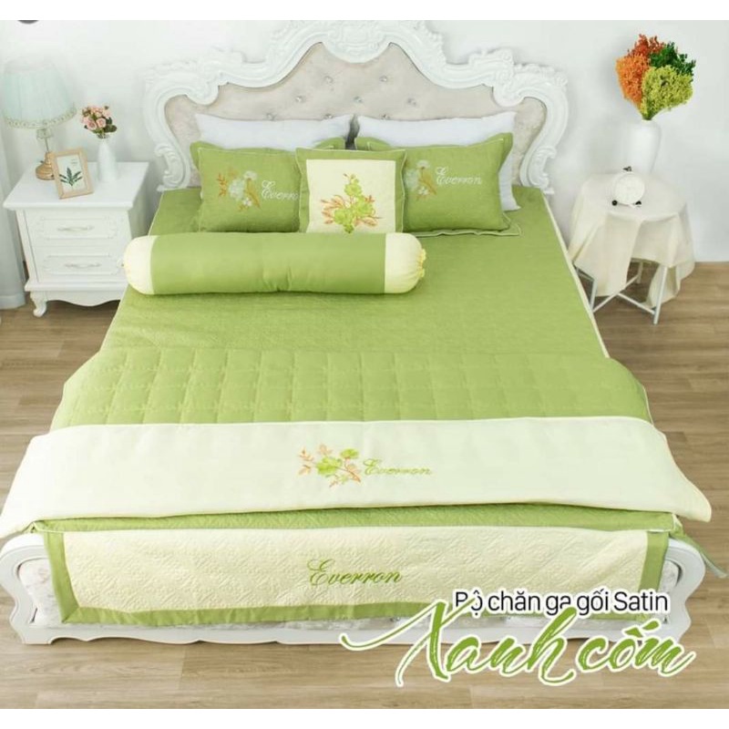 CHĂN GA GỐI MUJJI XIN KÍNH CHÀO MỌI NGƯỜI LƯU Ý : mọi người lưu ý mình đặt theo kích thước đệm của nhà mình 👉 đừng chọn đại nha 😘 Bộ ga gối cotton satin ( bộ ga phủ trần bông thêu hoa ) Set 7 món gồm 2 vỏ gối đầu chần bông thêu hoa 1 ga phủ chần bông thêu hoa 1 v