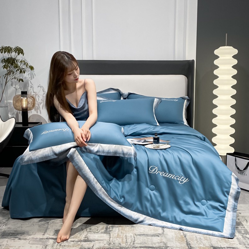 Bộ chăn ga gối lụa Dream city chăn trần hè mát lạnh , Set lụa phí bóng chăn hè mềm mịn nhập khẩu giá rẻ