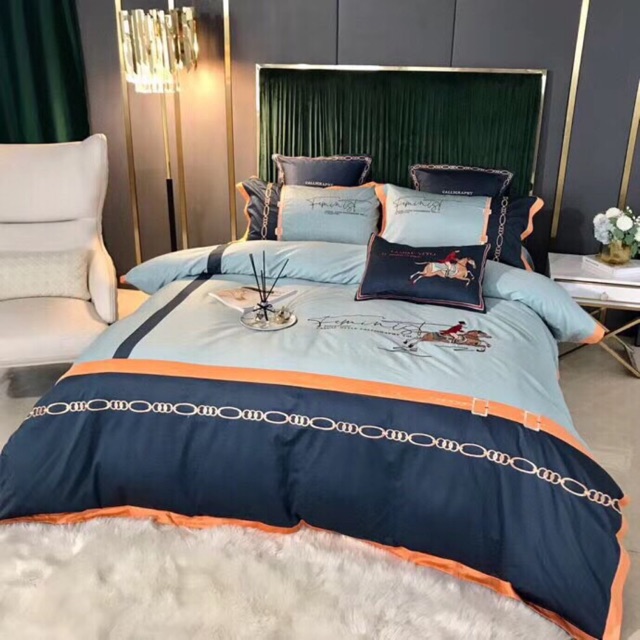 Bộ Chăn Ga Gối LỤA SILK PIMA VÂN CHÌM + Thêu logo Quý tộc mẫu mới 2020 /Set 4 món