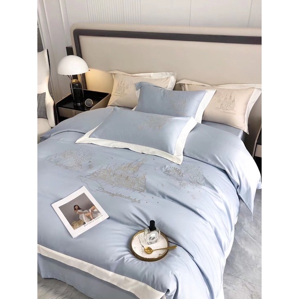 Bộ Chăn Ga Lụa Thêu Fairyland lâu đài cổ tích đẹp như tranh lụa thêu 100s cao cấp cực sang trọng