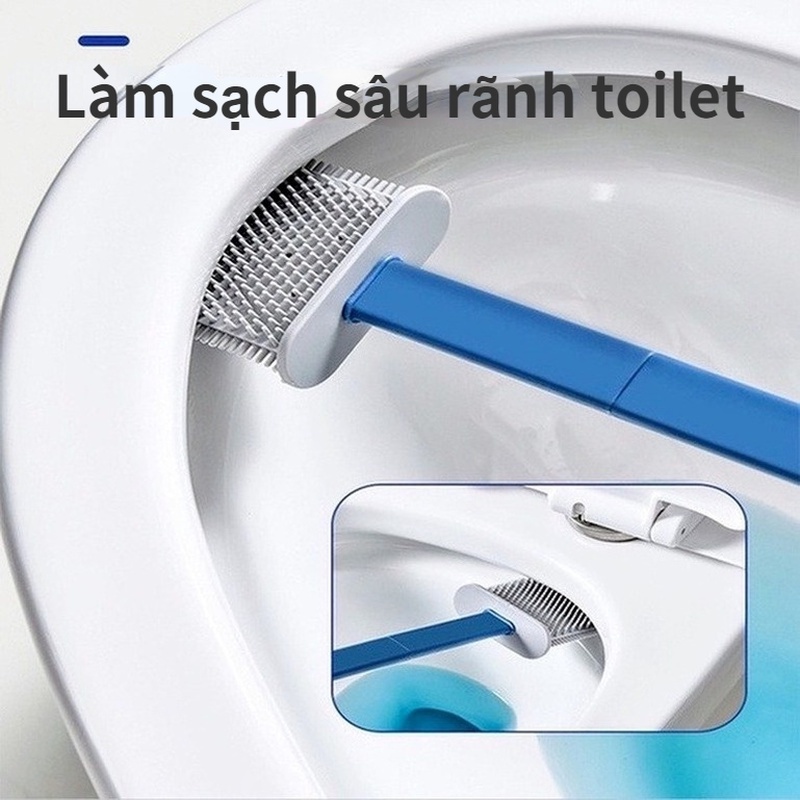 Bộ chổi cọ vệ sinh toilet gắn tường | Cọ bồn cầu bàn chải silicon mềm mại lau sạch mọi ngóc ngách, vết bẩn-Ahome