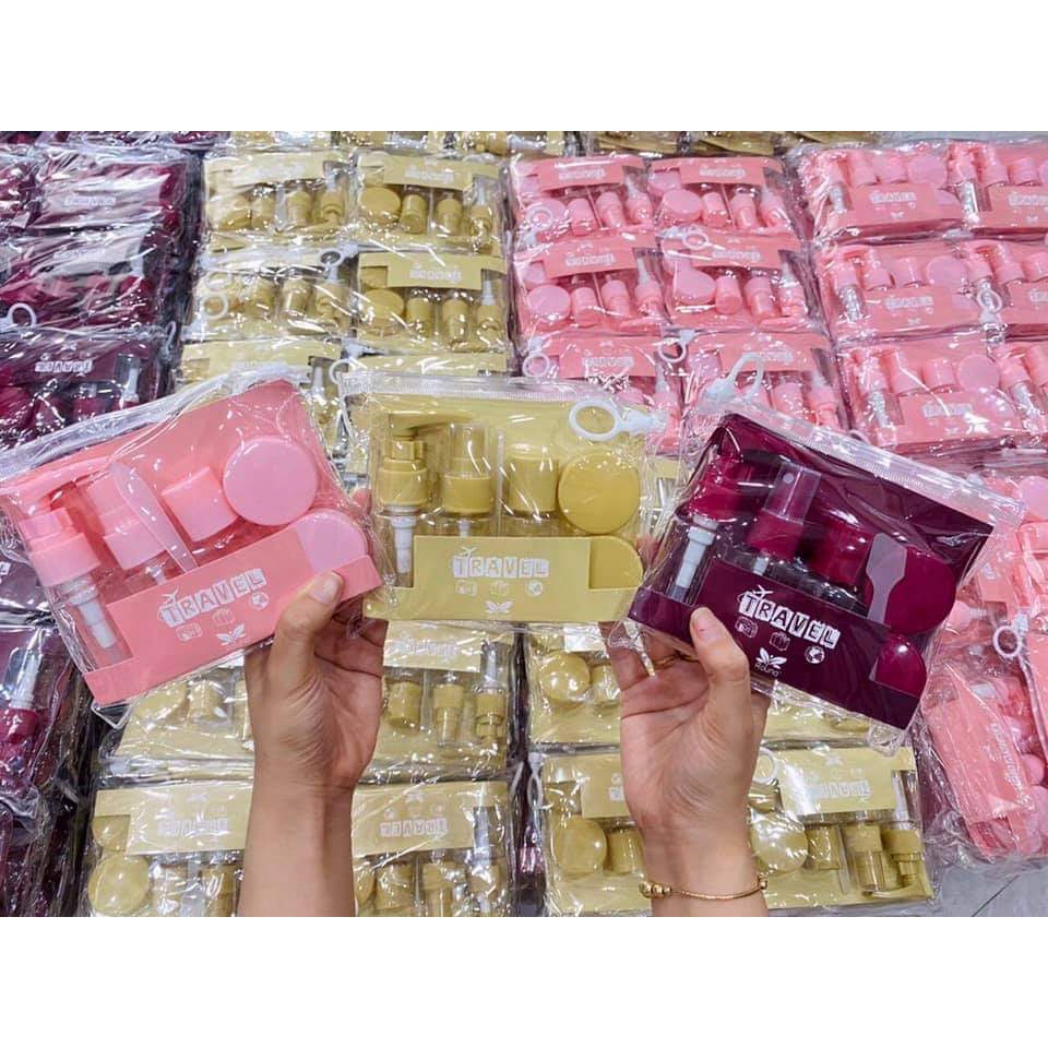 Combo bộ chiết mỹ phẩm 8 món, 9 món siêu xinh, đựng trong hộp nhựa và túi xách kéo khoá