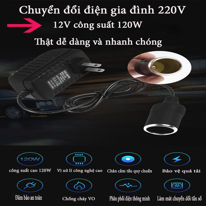 Bộ Chuyển Đổi Nguồn Cho Tẩu Ô Tô 220V Sang 12V, 110V - 12V Kết Nối Từ Tẩu Ô Tô Sử Dụng Cho Máy Hút Bụi, Máy Bơm CARZONE
