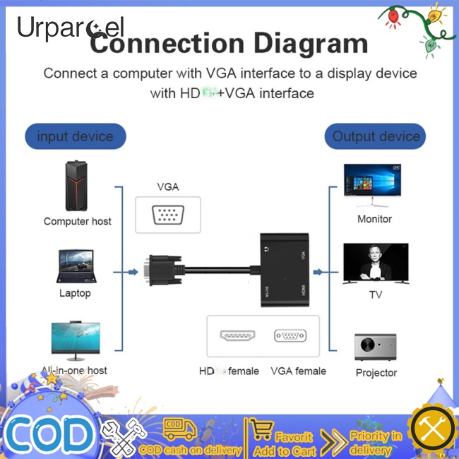 Bộ chuyển đổi Vga sang Hdmi chia cổng 3.5mm cho máy chiếu / hdtv URPARCEL