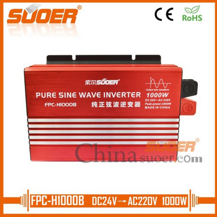 Bộ chuyển điện sin chuẩn 1000w từ 24v lên 220v hãng Suoer Chuyển đổi điện từ 24V sang 220V sử dụng cho chiếu sáng đèn, quạt, tivi, tủ lạnh, máy lạnh, máy bơm nước, nồi cơm điện, lò vi sóng, lò nường, bếp điện, nguồn dự phòng, công nghiệp, điện gia đình....Đặc biệt dù