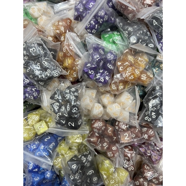 Đây là những viên xúc xắc ( xí ngầu ) có đa dạng hình mẫu có thể chơi được hầu như tất cả các loại games hiện nay. Có túi đựng đi kèm rất tiện dụng Màu sắc đen huyền bí sẽ giúp cho các trò chơi bạn dùng với xúc xắc này trở nên đẹp và chơi hấp dẫn lôi cuốn hơn Set có 7 loại xúc xắc ( xí ngầu ) như ảnh Ảnh cam kết là shop chụp 100% nên các bạn cứ yên tâm về chất lượng của sản phẩm nhé