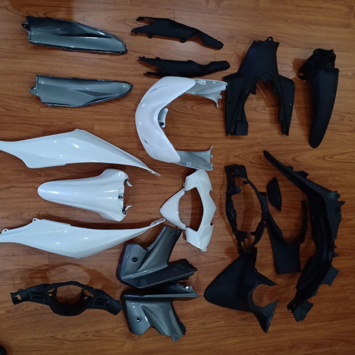 Thông tin sản phẩm: Dàn áo xe máy WAVE S110 - RS110 màu TRẮNG: - Chất liệu: nhựa ABS nguyên sinh - Màu sắc: TRẮNG - Hãng sản xuất: Việt Nam - Chịu nước Xử lý bề mặt: Sơn phun, qua hấp Sấy - Số lớp sơn trên bề mặt: 3 lớp - Nhiệt độ hấp sấy: 80 độ C - Tính năng