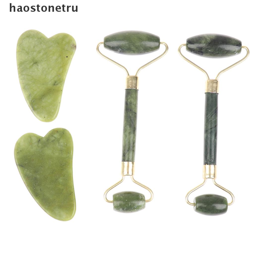 Bộ Dụng Cụ Lăn Massage Bằng Ngọc Bích Tự Nhiên + Bảng Guasha Board Cạo Bằng Đá SPA