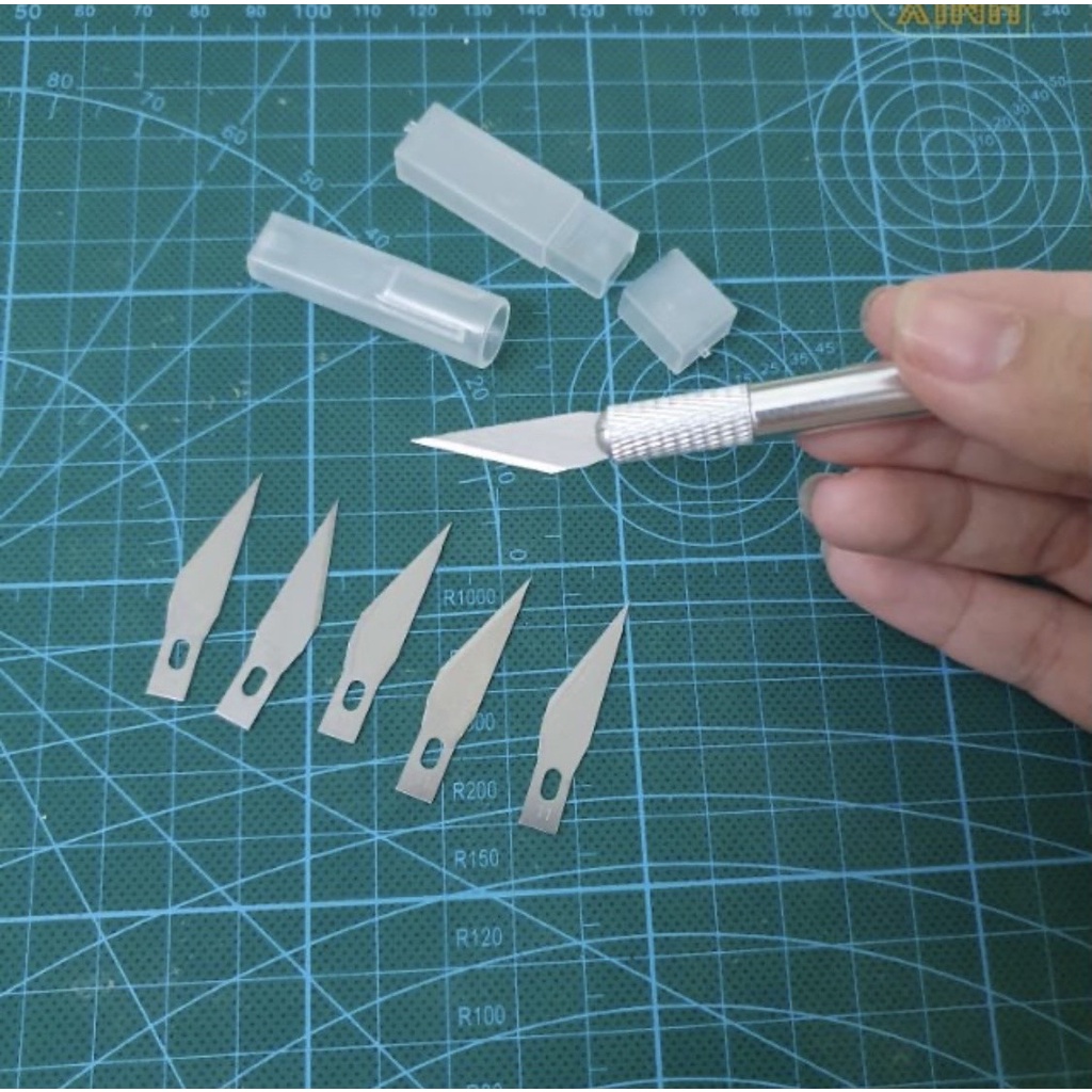 Bộ Dao Khắc Đa Năng Cán Nhôm ( Tặng Kèm 6 Lưỡi ) * Dùng để cắt giấy , bìa cứng , fomex , mô hình , que kem , Cắt tỉa hoa quả , điêu khắc , làm đồ handmade , chuốt bút chì * Tay cầm chống trượt giúp bạn cầm dao 1 cách chắc chắn * Lưỡi được làm bằng thép Cán dao được