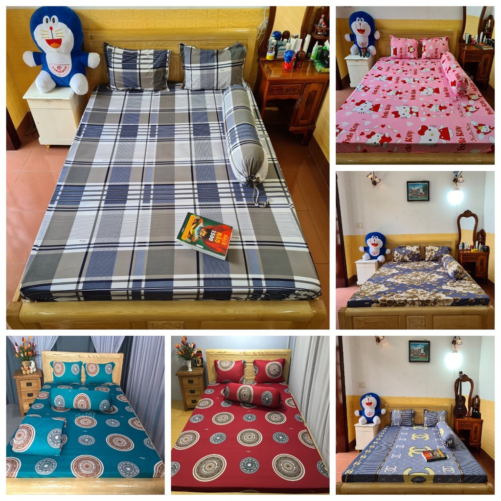 Bộ ga giường thun lạnh 4 món bọc được nệm 18cm gồm ga gối và vỏ ôm