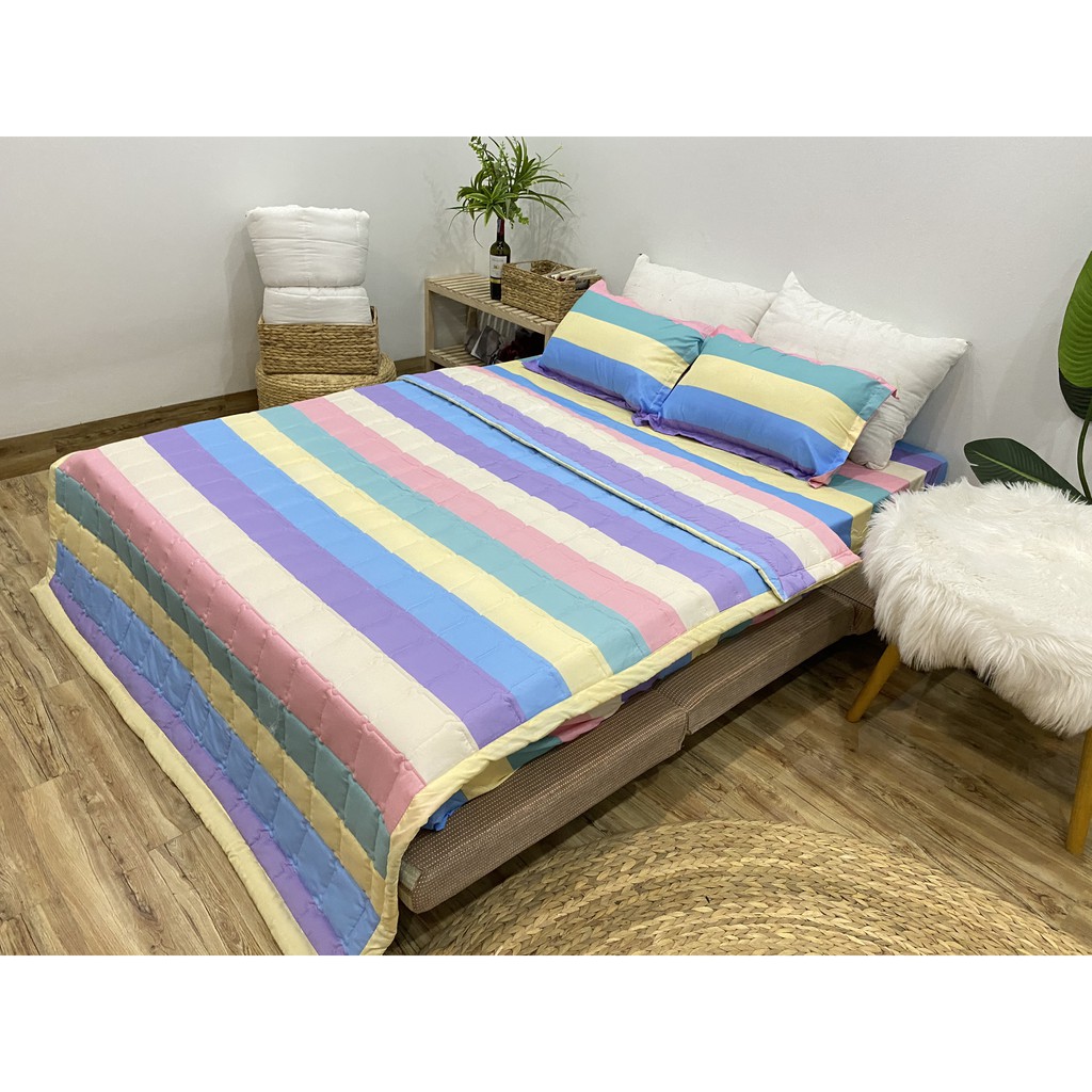 Bộ Ga Gối 1 Ga 2 Vỏ Gối Nằm Cotton Poly,đủ kích thước,mẫu kẻ 7 màu