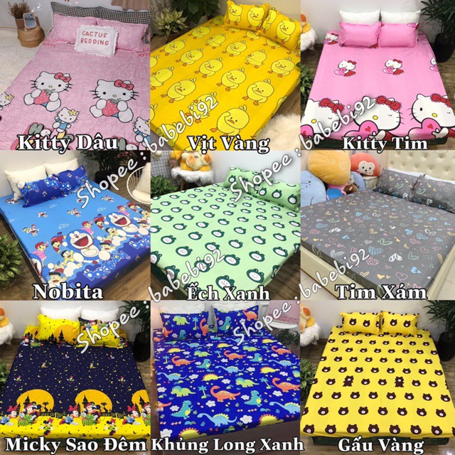 Bộ ga gối trải giường, bộ ga giường cotton poly họa tiết đáng yêu, cập nhật mẫu mới liên tục