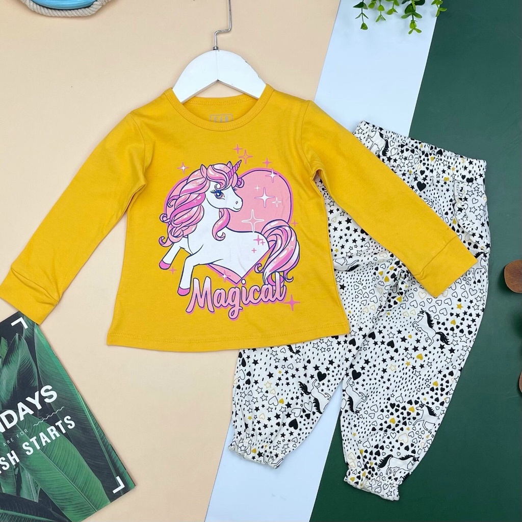 Bộ Gap cotton dài tay cho bé gái, có size từ 1-7 tuổi, họa tiết đáng yêu