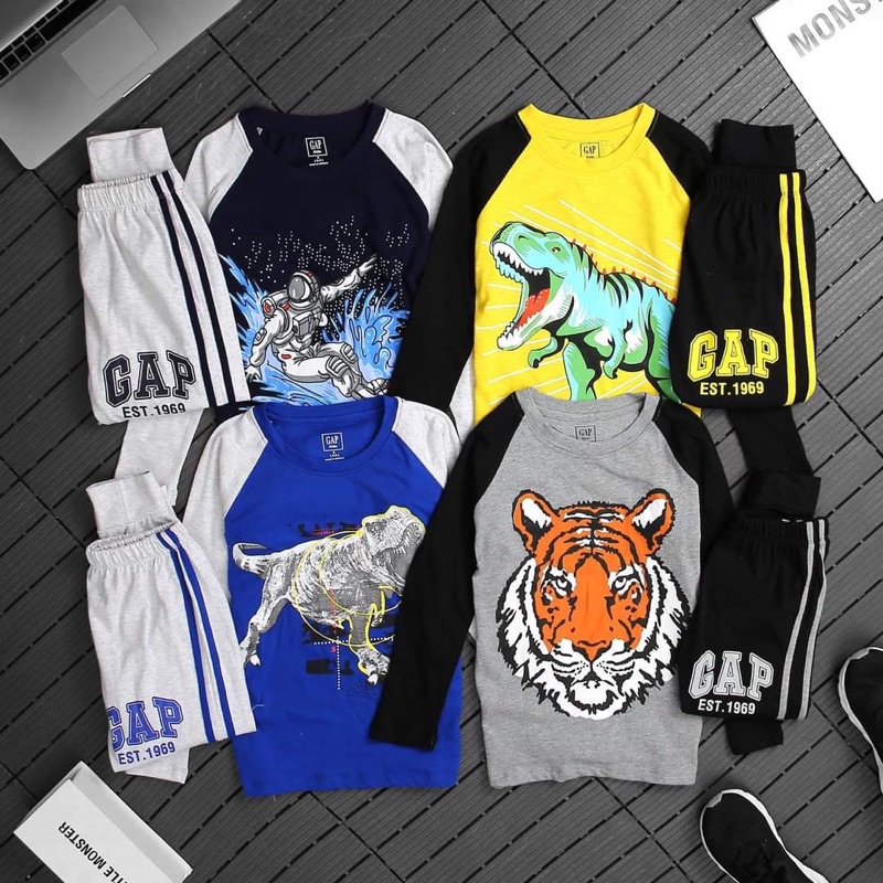 (12-45kg Bộ GAP tay dài bé trai, thun cotton xuất size nhí đại in hình siêu đẹp 190